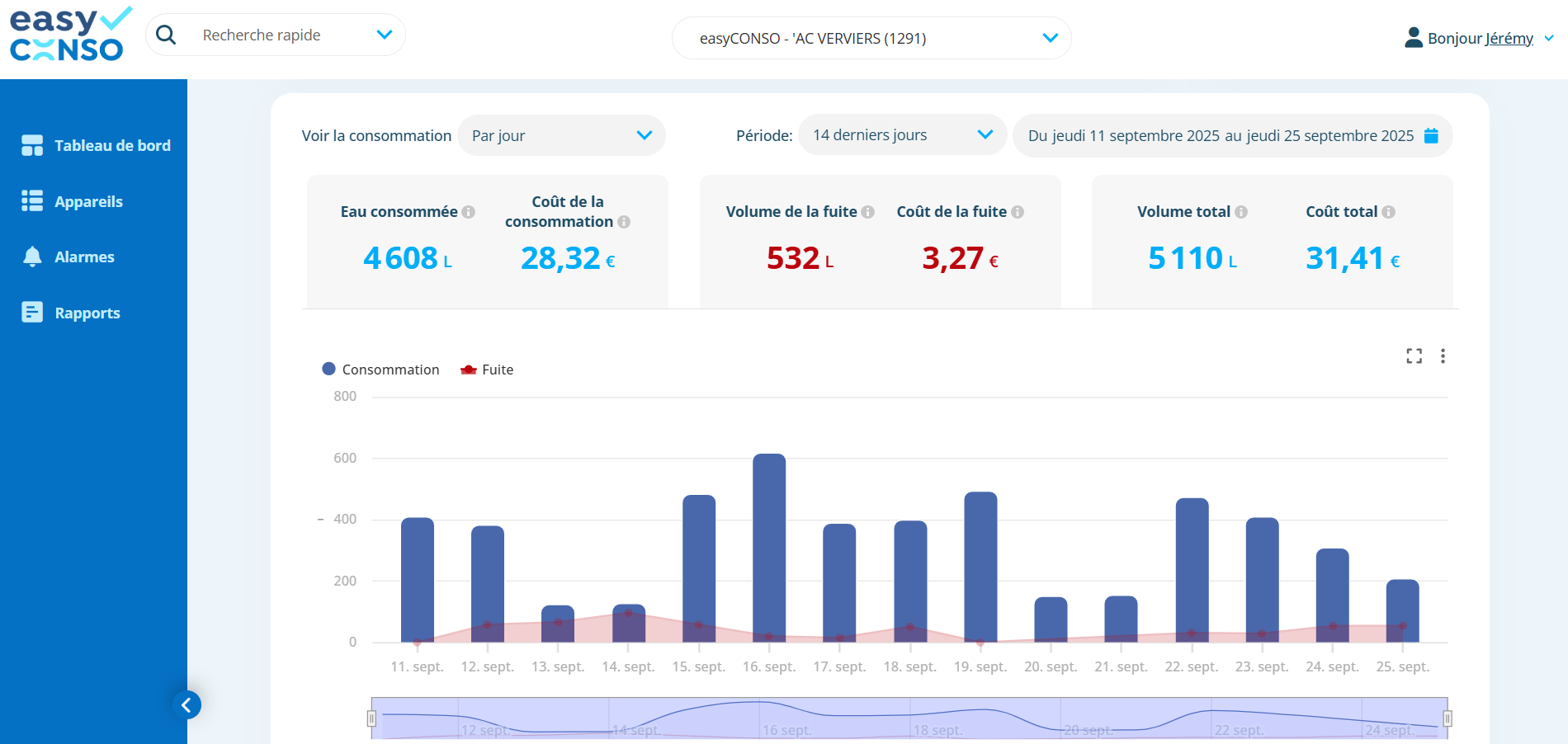 Vous avez plusieurs fuites et vous ne savez pas par laquelle commencer ! easyCONSO vous fournit, pour chaque fuite, le volume d’eau perdu. Vous savez, ainsi où vous devez agir en priorité.